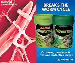 BioWorma® contains the spores of Duddingtonia flagrans, a natural fungus found in soil and on pasture. It is a non-chemical biological control for the free-living stages of parasitic gastrointestinal nematodes of grazing animals, which acts by substantially reducing the numbers of infective worm larvae (including chemical/multi-resistant larvae) emerging from manure onto pasture. When fed to animals, the thick-walled spores remain inert (having no effect within the host animal) and resist digestion, passing through into the manure. There they germinate and form trapping organs that capture, paralyse and consume emerging worm larvae (including chemical/multi-resistant larvae), interrupting the crucial re-infestation stage of the parasites’ life cycle, thus reducing the amount of re-infection on the pasture.